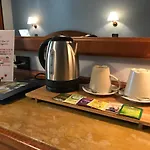 En personlig værdiboks, et skrivebord og et fladskærms TV med satellitkanaler samt separat toilet og en bruser findes på værelserne.